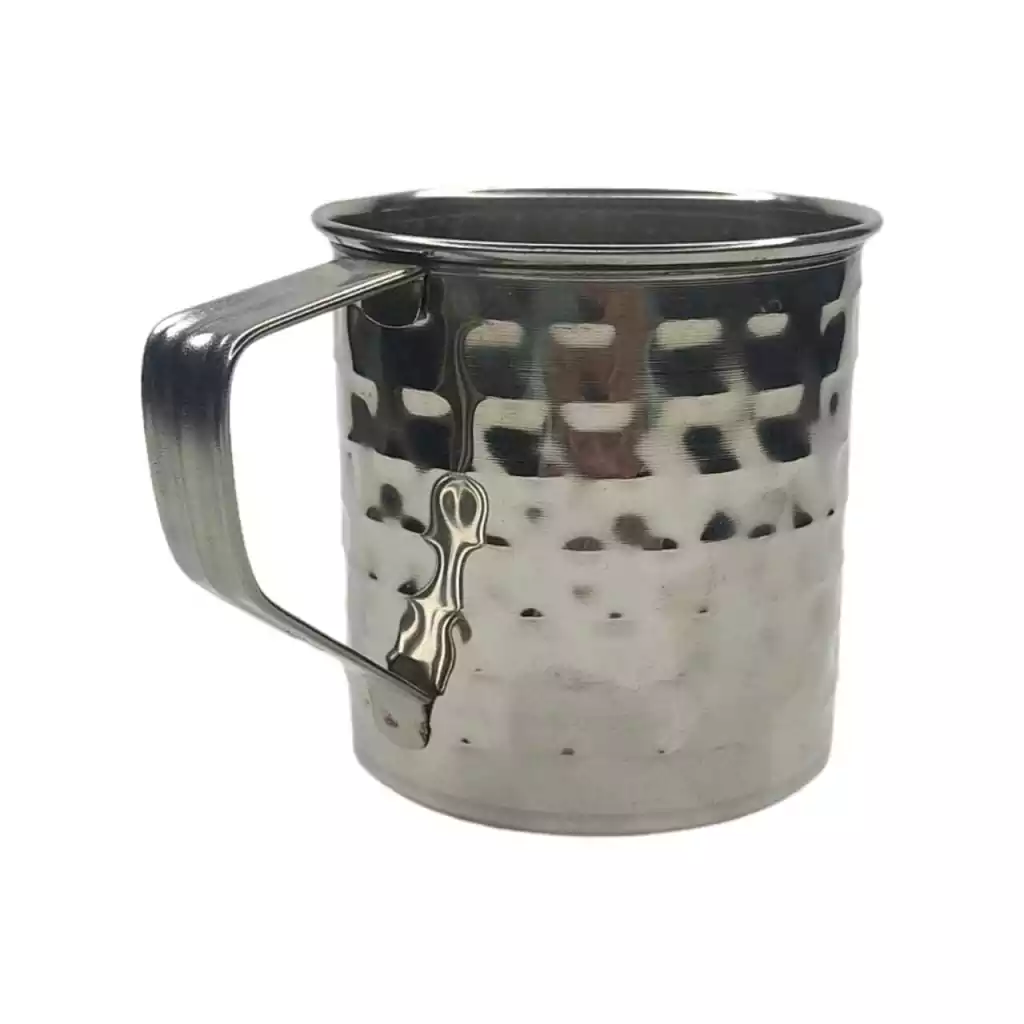 Caneca produzida em aço inox, confeccionada com parede espesso e resistente, pode ser utilizada no preparo de vários drinks ou coquetéis, sendo que o mais conhecido é o Moscow Mule. Seu corpo é martelado ou amassadinho, trazendo design e modernidade o corpo da caneca. Este modelo é todo em aço inox com alto brilho.