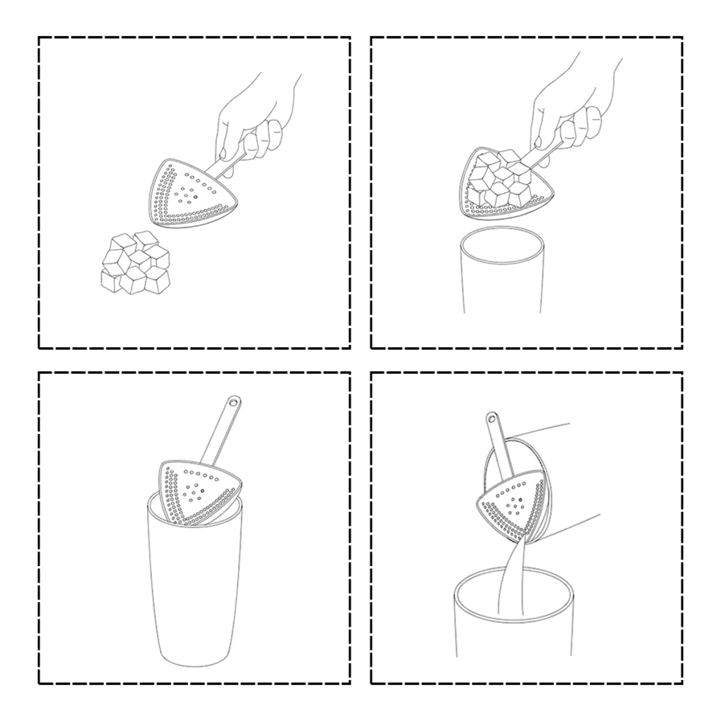 Este modelo conta com uma alça mais fina e várias aberturas circulares que fazem o líquido passar e retém os sólidos maiores, como o gelo e detritos de frutas.