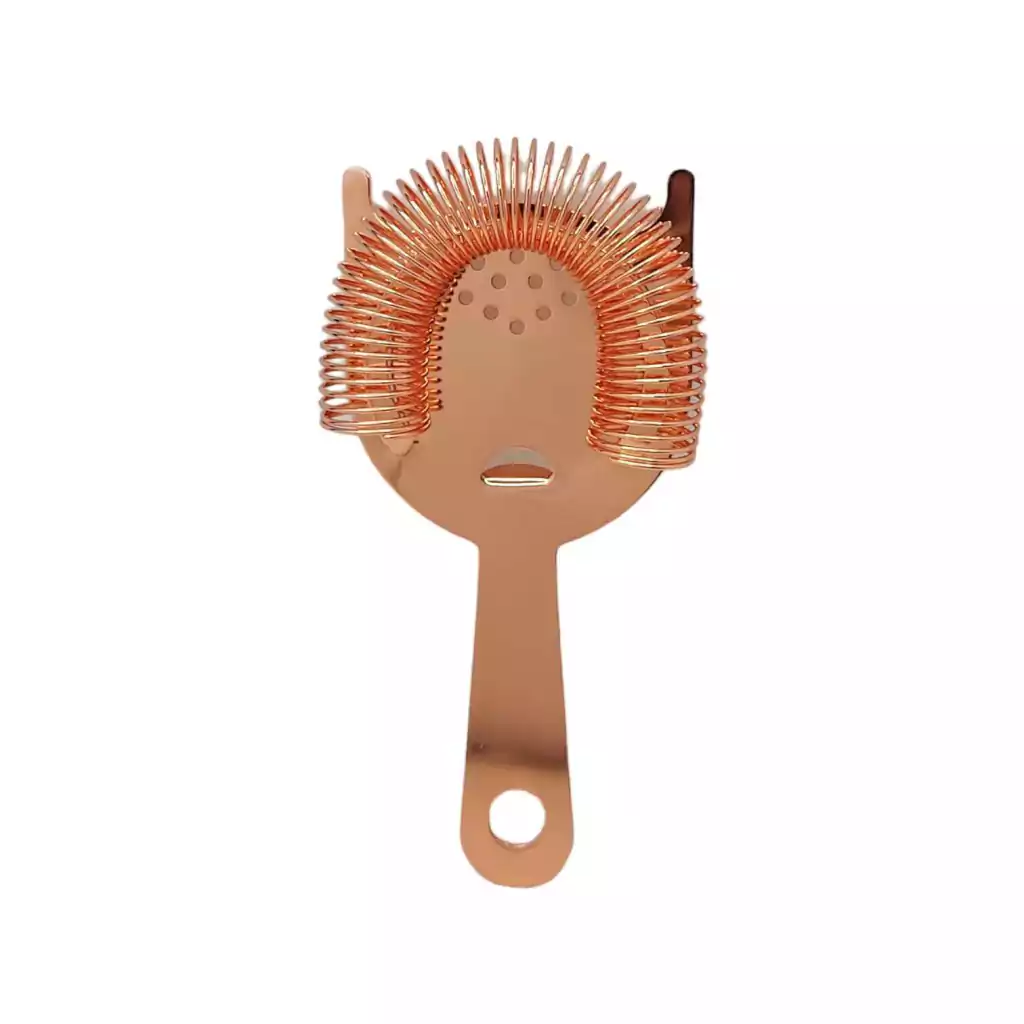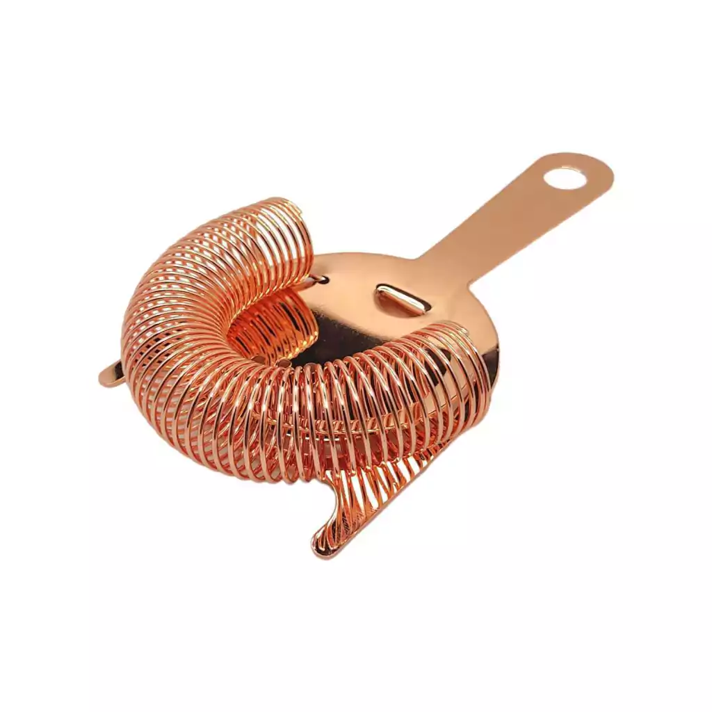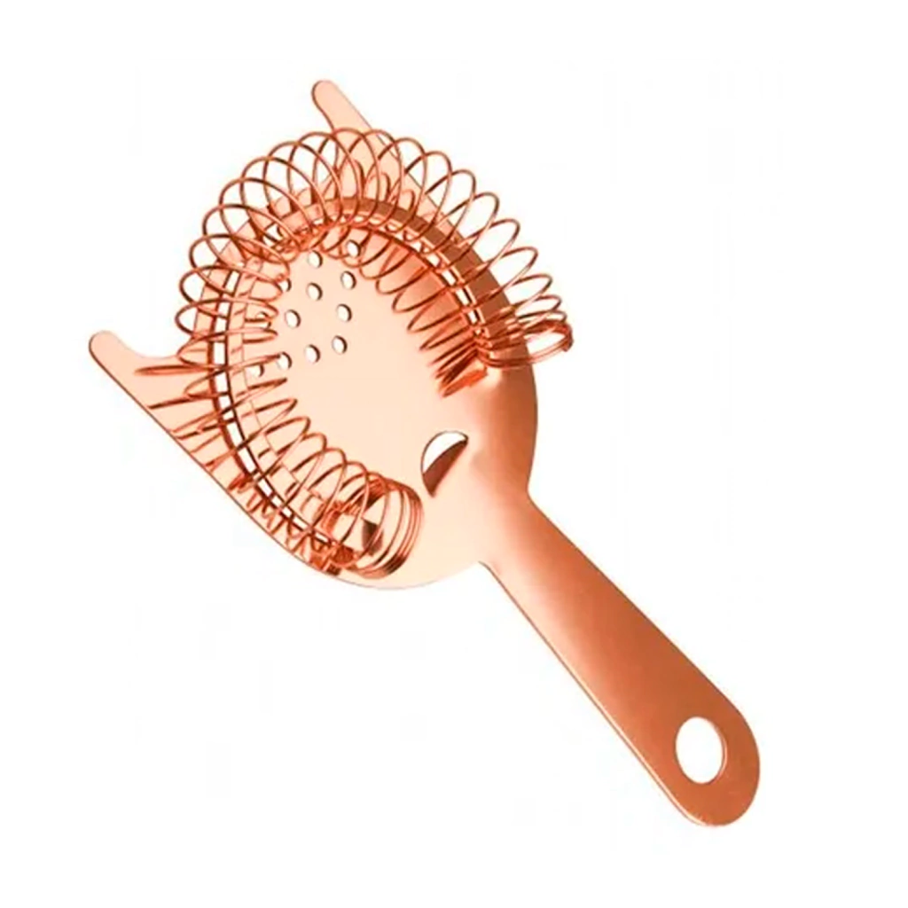 Coador Strainer é indispensável para o preparo de suas bebidas. Utilizado em conjunto com a Coqueteleira ou Mixing Glass, ele auxilia na coagem de resíduos maiores e separação do gelo na hora de servir seu coquetel. Seu uso pode ser comercial ou residencial, priorizando o prazer em servir com elegância e boa aparência, este Strainer é revestido na cor Rose Gold, Cobre, o que torna uma peça chave em seu kit de bar. Seu formato preza no conforto e praticidade no uso. Confeccionado em aço inox de qualidade e com revestimento Cobreado, com grande durabilidade.