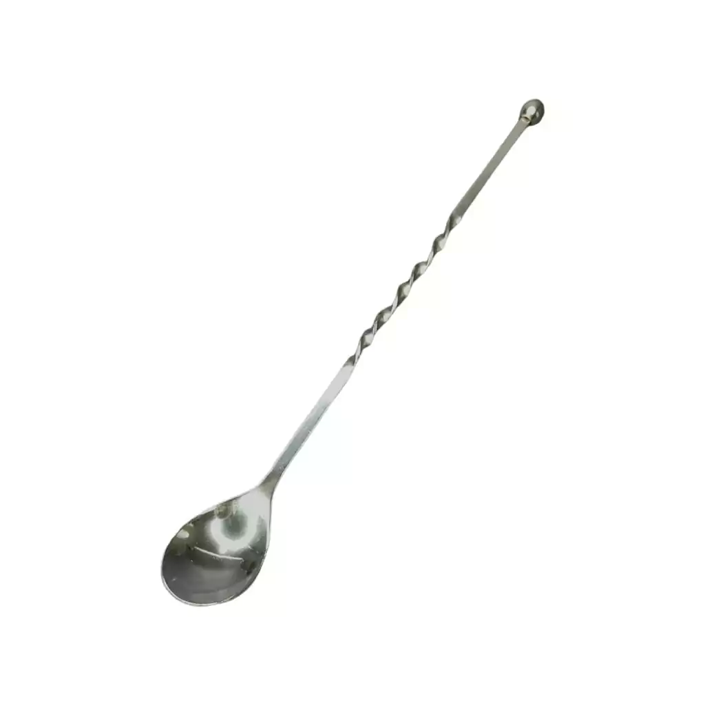 A ponta em formato de esfera ajuda a localizar mais facilmente dentre os seus itens e pode auxliar a macerar torroes de açucar. Seu cabo torcido facilita na aderência e na hora de mexer o drink.