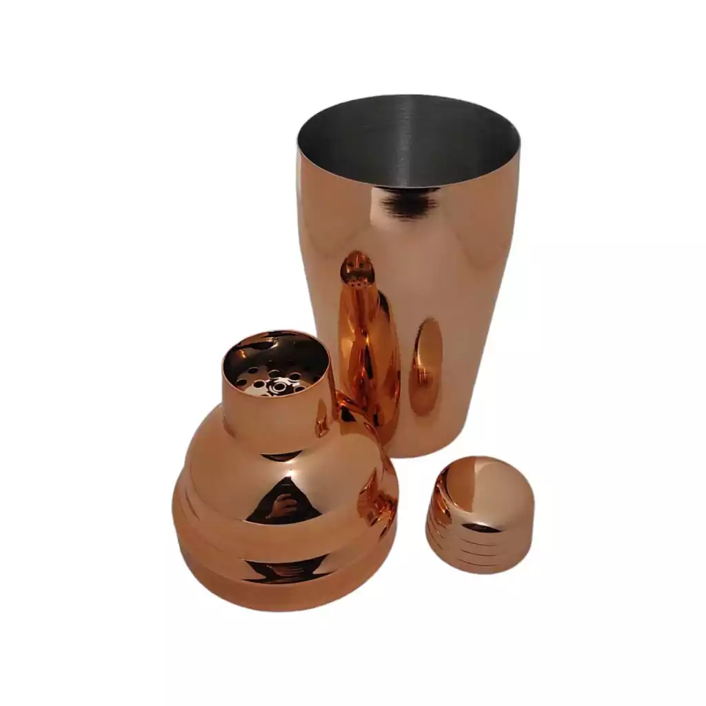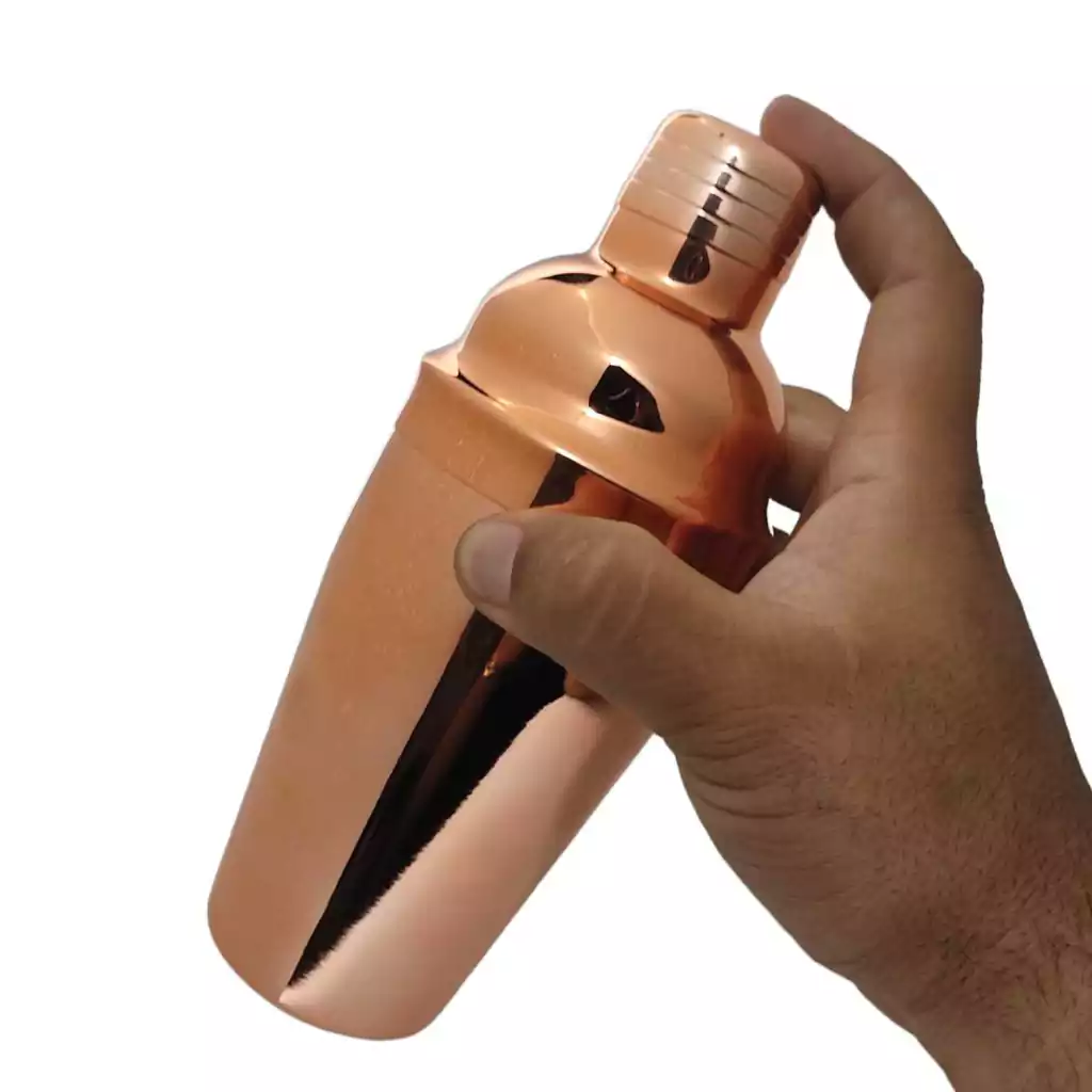 Esta coqueteleira é feita em aço inox o que dá grande durabilidade ao produto e tem 500ML, mais que o suficiente para você preparar muito mais de 1 copo de drinks, sendo ideal para levar para viagens ou inserir em kits de bar, conta o revestimento externo em Rose Gold a sua manutenção requer alguns cuidados no ato da lavagem, sempre com esponja macia, para não arranhar o Brilho do produto e cuidados com produtos pontiagudos para não riscar a superfície.
