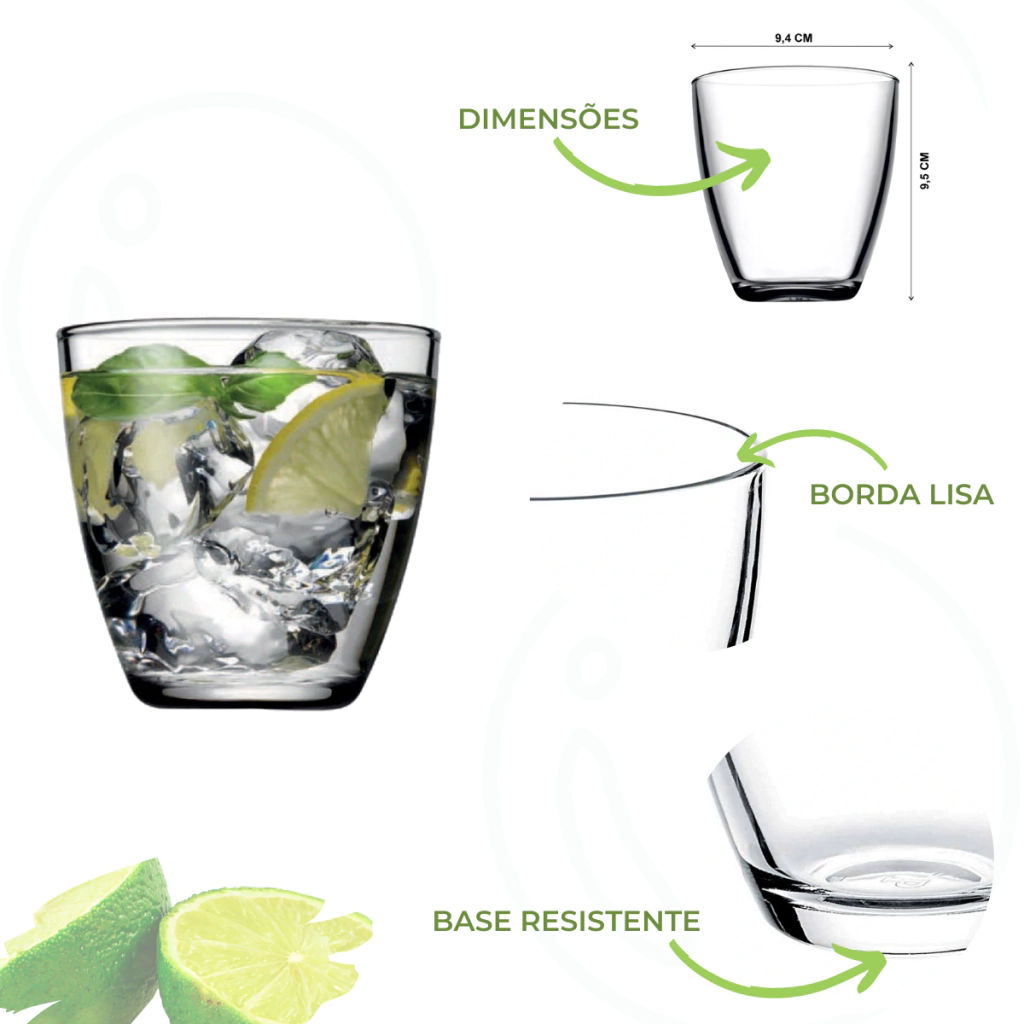 Com altura de 9,5 cm e diâmetro da boca de 9,4 cm, é o modelo padrão da nossa queria Caipirinha.