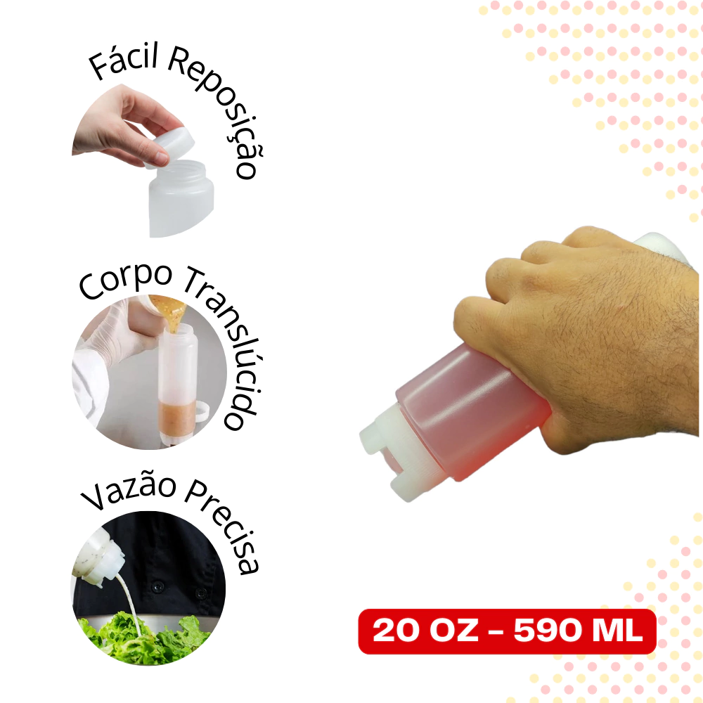 Tampa Superior: Facilita a reposição do molho de forma rápida e prática.