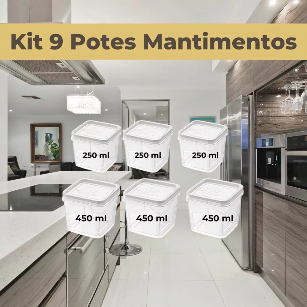 Para ajudar você a armazenar seus alimentos de maneira segura e eficiente, apresentamos nosso kit de potes de cozinha composto por nove peças. Esses potes feitos de plástico premium livre de BPA mantêm seus alimentos frescos enquanto protegem sua saúde.