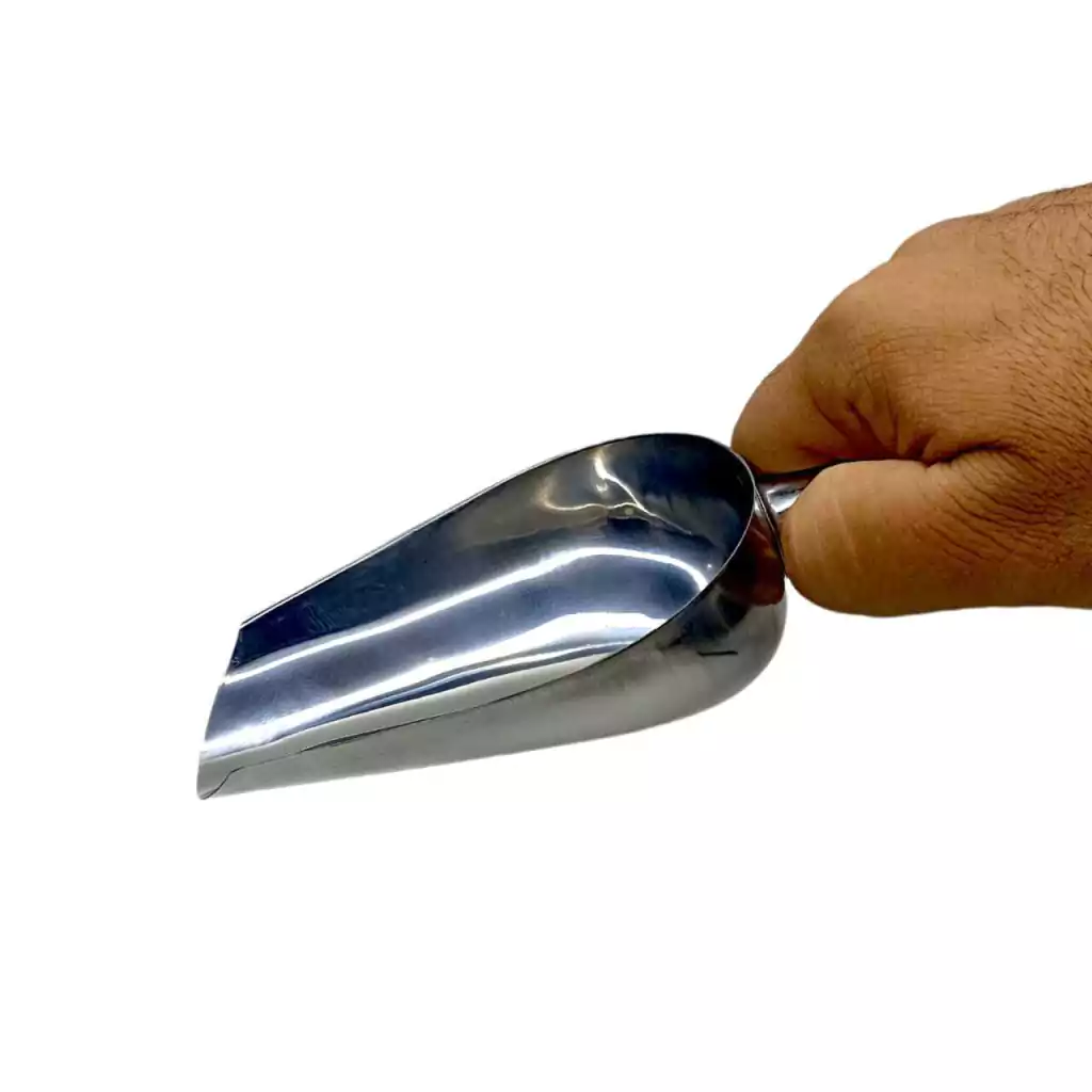 Com um tamanho grande, consegue pegar uma quantidade de gelo maior por cada porção, diminuindo a quantidade de vezes que é preciso enche-la para completar uma coqueteleira.