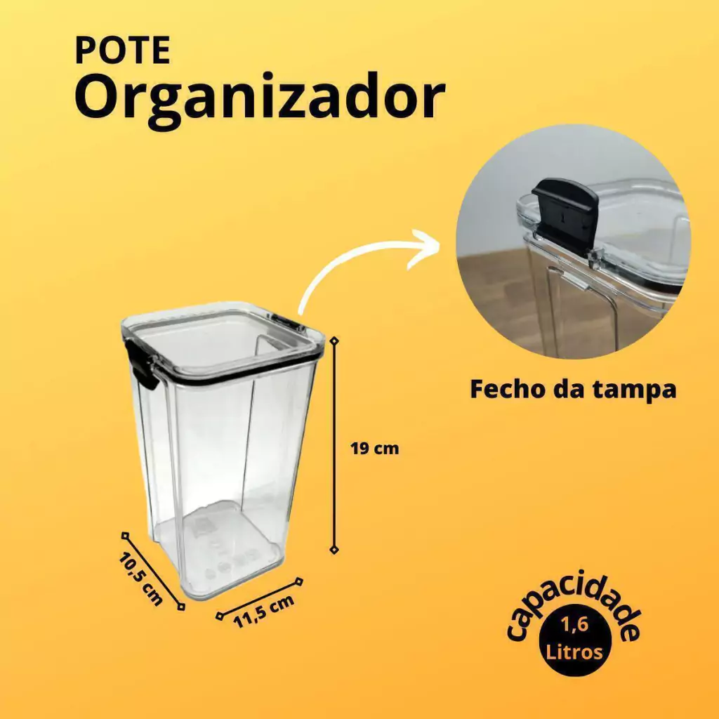 01 POTES QUADRADO SLIM DE POLIPROPILENO LIVRE DE BPA 1,6 LITRO COM TAMPA HERMÉTICA: